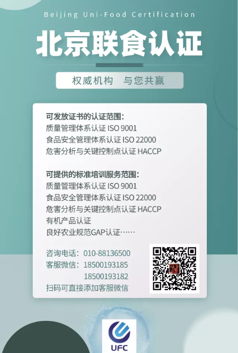 北京聯(lián)食認(rèn)證服務(wù)有限公司正式獲批發(fā)證。目前獲批準(zhǔn)的認(rèn)證領(lǐng)域有:ISO 9001質(zhì)量管理體系認(rèn)證、ISO 22000食品安全管理體系及HA......