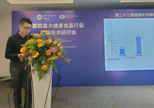 魏冰博士分享了《功能食品可以有多“棒”》的主題報告,主要介紹了功能食品的分類、市場規(guī)模及創(chuàng)新機遇,并結(jié)合市場、人群及現(xiàn)有產(chǎn)品分析,為我們講解研發(fā)思路和產(chǎn)品分享。