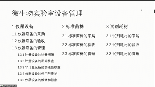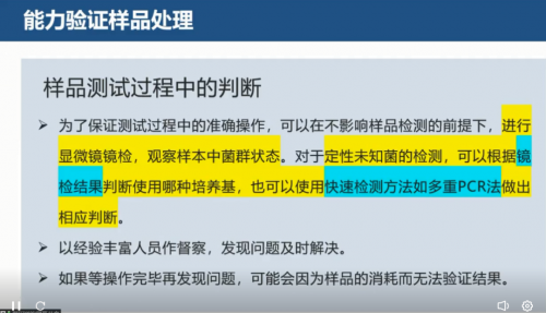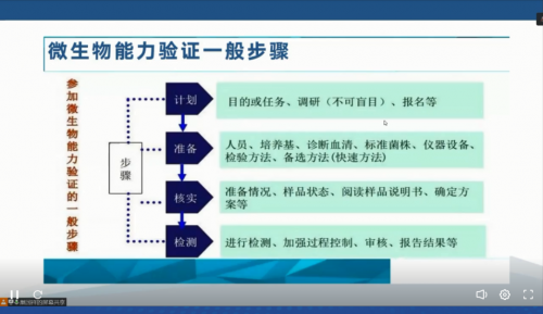 然后從人員要求、檢驗(yàn)方法、實(shí)驗(yàn)設(shè)備及環(huán)境、檢驗(yàn)用品、培養(yǎng)基及試劑的質(zhì)量要求和測(cè)試方法、培養(yǎng)基保存、標(biāo)準(zhǔn)菌株的準(zhǔn)備及驗(yàn)證、檢測(cè)過(guò)程中各個(gè)步驟的注意事項(xiàng)、能力驗(yàn)證應(yīng)對(duì)等方面對(duì)“能力驗(yàn)證的過(guò)程”進(jìn)行了全面的深入講解。