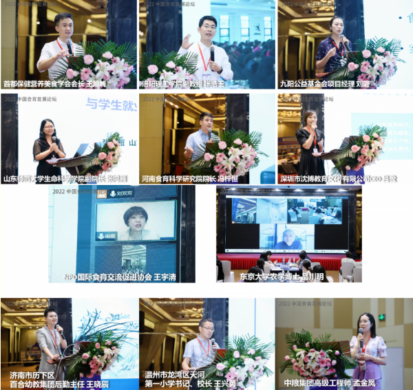 北京大學(xué)公共衛(wèi)生學(xué)院教授馬冠生、中國(guó)疾病預(yù)防控制中心營(yíng)養(yǎng)與健康所營(yíng)養(yǎng)與健康教育室主任劉愛玲、山東省市場(chǎng)監(jiān)督管理局一級(jí)調(diào)研員遲玉聚、農(nóng)業(yè)農(nóng)村部食物與營(yíng)養(yǎng)發(fā)展研究所植物食物與營(yíng)養(yǎng)政策研究中心主任黃家章、首都保健營(yíng)養(yǎng)美食學(xué)會(huì)會(huì)長(zhǎng)王旭峰、《幼兒園食育實(shí)用指導(dǎo)》主編張浩玉、九陽(yáng)公益基金會(huì)項(xiàng)目經(jīng)理劉璐、山東師范大學(xué)生命科學(xué)學(xué)院副院長(zhǎng)張鴻雁、河南食育科學(xué)研究院院長(zhǎng)馮梓恒、深圳市深博教育文化有限公司CEO呂盈、日本九州大學(xué)教授王宇清、日本學(xué)習(xí)院女子大學(xué)品川明教授、百合幼教集團(tuán)食育學(xué)研共同體負(fù)責(zé)人王曉辰、溫州市龍灣區(qū)天河第一小學(xué)校長(zhǎng)王興勇、中糧集團(tuán)高級(jí)工程師孟金鳳參加了本次論壇,并為大家做了食育相關(guān)主題發(fā)言。