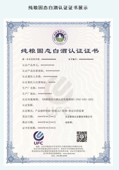 純糧固態(tài)白酒認(rèn)證是聯(lián)食認(rèn)證依據(jù)經(jīng)國家認(rèn)監(jiān)委備案的《純糧固態(tài)白酒認(rèn)證實施規(guī)則》,對白酒生產(chǎn)企業(yè)的原輔料采購控制、制曲過程控制、釀酒過程控制、勾調(diào)過程控制、包裝過程控制、檢驗控制、食品安全追溯管理、生產(chǎn)衛(wèi)生規(guī)范管理等方面進(jìn)行現(xiàn)場檢查;對酒類產(chǎn)品的食品安全指標(biāo)、理化指標(biāo)、感官指標(biāo)等進(jìn)行抽樣檢驗和品評的認(rèn)證活動。通過一次認(rèn)證活動對白酒純糧固態(tài)生產(chǎn)保證能力及白酒質(zhì)量安全等做出全面評價,以評定企業(yè)產(chǎn)品是否符合《純糧固態(tài)白酒認(rèn)證實施規(guī)則》的要求。