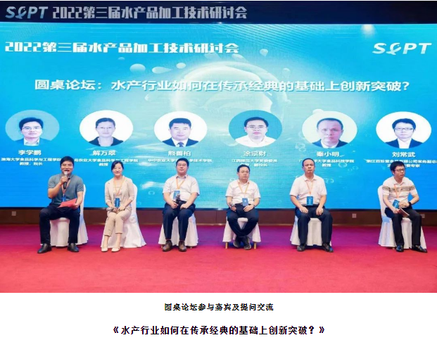 圓桌論壇環(huán)節(jié),共有6位老師參與了交流,從左至右分別是:渤海大學(xué)李學(xué)鵬教授、青島農(nóng)業(yè)大學(xué)解萬(wàn)翠教授、華中農(nóng)業(yè)大學(xué)熊善柏教授、江西師范大學(xué)涂宗財(cái)教授、廣東海洋大學(xué)秦小明教授、浙江百珍堂的常務(wù)副總裁劉常武先生。在李學(xué)鵬教授的主持下,五位老師分別就主題進(jìn)行了個(gè)人對(duì)行業(yè)的見(jiàn)解以及觀點(diǎn)的闡述,由于時(shí)間關(guān)系,最后保留2個(gè)現(xiàn)場(chǎng)提問(wèn)的機(jī)會(huì)進(jìn)行交流問(wèn)答。
