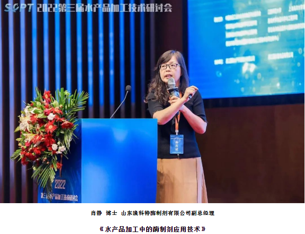 肖靜,博士,山東隆科特酶制有限公司副總經(jīng)理;山東省酶制劑重點(diǎn)實(shí)驗(yàn)室主任、技術(shù)首席;齊魯工業(yè)大學(xué)研究生導(dǎo)師;中國(guó)食品科技學(xué)會(huì)酶制劑分會(huì)理事。主要從事微生物和酶制劑的應(yīng)用研究,生物質(zhì)原料的綠色加工和新產(chǎn)品開(kāi)發(fā)等。本次報(bào)告肖老師主要講解了酶制劑的來(lái)源、分類(lèi)和作用;酶制劑的應(yīng)用領(lǐng)域;水產(chǎn)品加工領(lǐng)域中,酶輔處理食品原料及加工食品:包括魚(yú)糜、魚(yú)丸、蝦丸類(lèi)產(chǎn)品加工;魷魚(yú)、海參脫皮;水產(chǎn)來(lái)源的醫(yī)藥、保健品的用酶技術(shù):酶解魚(yú)皮、魚(yú)鱗、魚(yú)骨制備膠原蛋白肽;蠣肽、帶魚(yú)肽;酶解海參花制備海參肽;酶解鯊魚(yú)骨制備硫酸軟骨素和膠原蛋白肽等。酶解魚(yú)膏、蝦膏、魚(yú)溶漿生產(chǎn)飼料。酶解低值魚(yú)制備魚(yú)蛋白肥,酶解海藻制備海藻肥等。