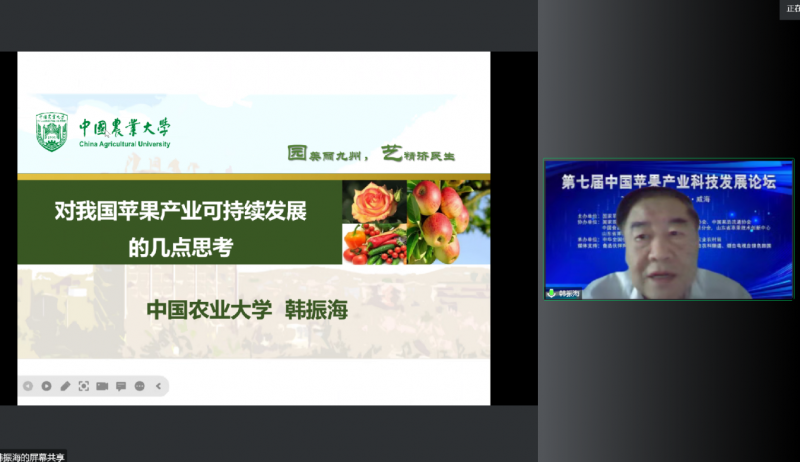 中國(guó)農(nóng)業(yè)大學(xué)園藝學(xué)院院長(zhǎng)韓振海教授做《對(duì)我國(guó)蘋(píng)果產(chǎn)業(yè)可持續(xù)發(fā)展的幾點(diǎn)思考》報(bào)告,從栽培集約化、管理精簡(jiǎn)化、老果園降本增效改造、品牌建設(shè)、社會(huì)化服務(wù)多方面提出推進(jìn)產(chǎn)業(yè)可持續(xù)發(fā)展的建議。