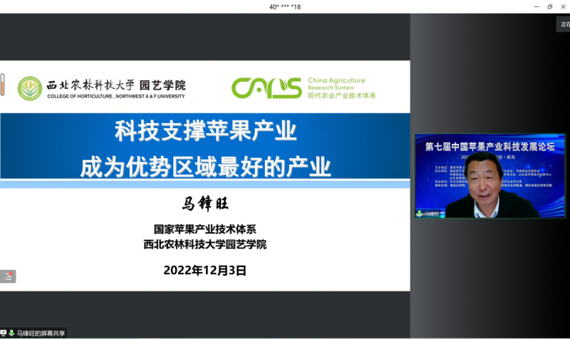 西北農(nóng)林科技大學(xué)園藝學(xué)院院長(zhǎng)馬鋒旺教授做《科技支撐蘋(píng)果產(chǎn)業(yè)成為優(yōu)勢(shì)區(qū)域最好的產(chǎn)業(yè)》報(bào)告,詳細(xì)介紹了區(qū)域化發(fā)展、科技創(chuàng)新、現(xiàn)代裝備、綠色生態(tài)等科技驅(qū)動(dòng)支撐蘋(píng)果產(chǎn)業(yè)高質(zhì)量發(fā)展的七大戰(zhàn)略