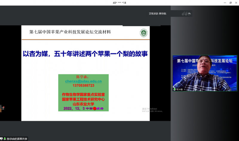 國(guó)家蘋(píng)果工程中心主任陳學(xué)森教授做《以杏為媒,五十年講述兩個(gè)蘋(píng)果一個(gè)梨的故事》報(bào)告,分享了持之以恒開(kāi)展果樹(shù)育種創(chuàng)新研究,實(shí)現(xiàn)“紅蘋(píng)果,中國(guó)芯”,把果盤(pán)子牢牢掌握在中國(guó)人手中的研究與實(shí)踐歷程。