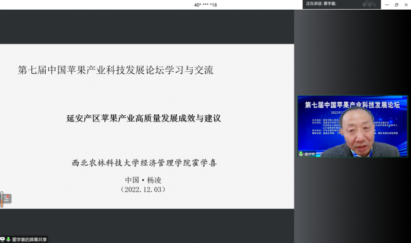 西北農(nóng)林科技大學(xué)霍學(xué)喜教授做《延安產(chǎn)區(qū)蘋(píng)果產(chǎn)業(yè)高質(zhì)量發(fā)展成效與建議》報(bào)告,重點(diǎn)從產(chǎn)業(yè)經(jīng)濟(jì)學(xué)角度分析了推動(dòng)延安蘋(píng)果產(chǎn)業(yè)轉(zhuǎn)型升級(jí)的建議。