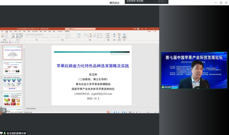 青島農(nóng)業(yè)大學(xué)張玉剛教授做《蘋(píng)果抗病省力化特色品種選育策略及應(yīng)用》報(bào)告,介紹了面對(duì)勞動(dòng)力短缺現(xiàn)狀和消費(fèi)新需求,開(kāi)展的蘋(píng)果鮮食、加工特色品種篩選與評(píng)價(jià)應(yīng)用創(chuàng)新研究。