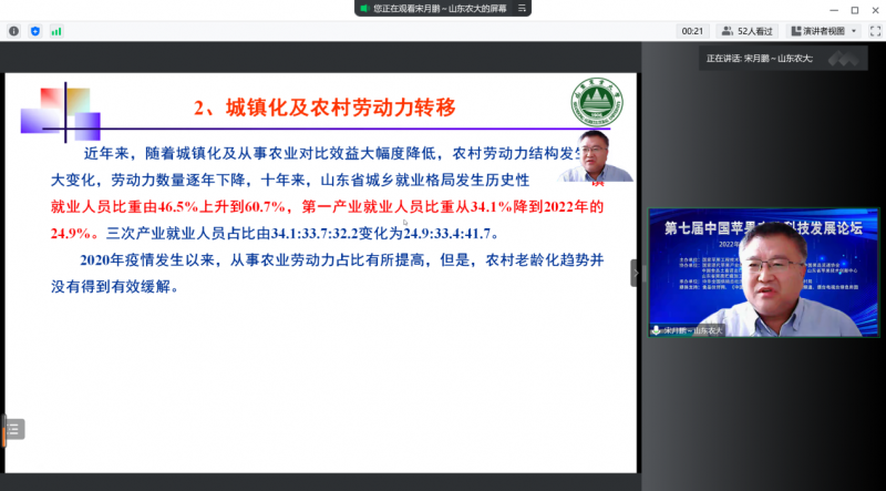 會(huì)議貫徹落實(shí)黨的二十大精神,探討新時(shí)代我國(guó)蘋(píng)果產(chǎn)業(yè)發(fā)展的方向,針對(duì)制約蘋(píng)果產(chǎn)業(yè)提質(zhì)增效的共性問(wèn)題,圍繞“規(guī)模化、生草化、無(wú)袋化、設(shè)施化四化建設(shè)助推蘋(píng)果產(chǎn)業(yè)高質(zhì)量發(fā)展”議題,邀請(qǐng)了來(lái)自高校、科研院所、農(nóng)業(yè)主管部門(mén)的14專(zhuān)家學(xué)者做了精彩報(bào)告,剖析蘋(píng)果產(chǎn)業(yè)存在問(wèn)題和發(fā)力點(diǎn),引領(lǐng)我國(guó)蘋(píng)果生產(chǎn)、流通、加工全產(chǎn)業(yè)鏈科學(xué)化和規(guī)范化發(fā)展,助力蘋(píng)果產(chǎn)業(yè)做大做強(qiáng)。會(huì)議通過(guò)食品伙伴網(wǎng)食學(xué)寶平臺(tái)直播,山東廣播電視臺(tái)農(nóng)科頻道、煙臺(tái)電視臺(tái)綠色田園進(jìn)行了同步直播,共近3萬(wàn)人次線上收看。