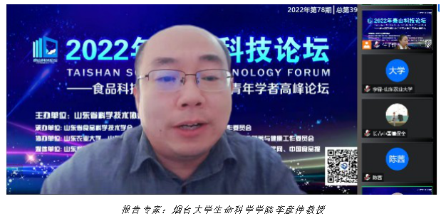 會(huì)議邀請(qǐng)了包括新西蘭食品科技院院士、國際農(nóng)業(yè)和生物系統(tǒng)工程國際委員會(huì)"功能食品、健康食品和營養(yǎng)"工作平臺(tái)孫東曉主席,臨沂大學(xué)生命科學(xué)學(xué)院劉云國教授,煙臺(tái)大學(xué)生命科學(xué)學(xué)院李彥伸教授,長青(中國)日用品有限公司技術(shù)總監(jiān)崔保金,山東農(nóng)業(yè)大學(xué)食品科學(xué)與工程學(xué)院副教授徐康、譚欣同和齊魯工業(yè)大學(xué)(山東省科學(xué)院)副教授生物工程學(xué)部副教授汪俊卿等7位專家學(xué)者做會(huì)議報(bào)告,近百位在校師生分別在山東農(nóng)業(yè)大學(xué)、臨沂大學(xué)、煙臺(tái)大學(xué)、威海海洋職業(yè)學(xué)院等線下會(huì)場(chǎng)集中收看。來自全國的專家學(xué)者、科研人員及企業(yè)代表在線參會(huì),騰訊會(huì)議及食學(xué)寶雙平臺(tái)線上參會(huì)人數(shù)達(dá)到1380人次。報(bào)告專家聚焦于我國食品科技和健康產(chǎn)業(yè)創(chuàng)新與高質(zhì)量發(fā)展,立足十四五規(guī)劃發(fā)展綱要,探討食品科技產(chǎn)業(yè)面臨的機(jī)遇與挑戰(zhàn),圍繞食品產(chǎn)品功能化和健康食品等前沿成果展開討論交流,對(duì)增進(jìn)同行友誼,加強(qiáng)科研協(xié)作,促進(jìn)食品領(lǐng)域科技創(chuàng)新產(chǎn)生積極的推動(dòng)作用。