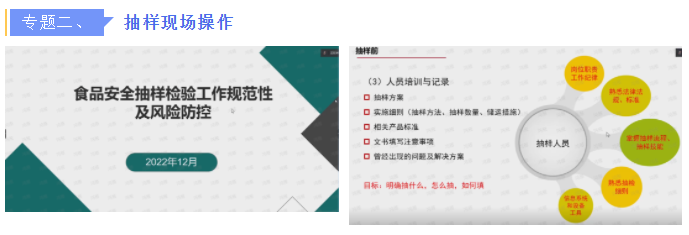 老師先是簡(jiǎn)要介紹了食品安全抽樣總體原則與隨機(jī)抽樣,從專業(yè)的角度逐條分析了各類抽檢食品抽樣注意事項(xiàng),然后針對(duì)抽樣的原則、注意事項(xiàng)、抽樣過(guò)程控制、取樣環(huán)境要求等內(nèi)容進(jìn)行深入講解,最后對(duì)食品農(nóng)產(chǎn)品抽樣工作要求及注意事項(xiàng)進(jìn)行了詳細(xì)介紹。