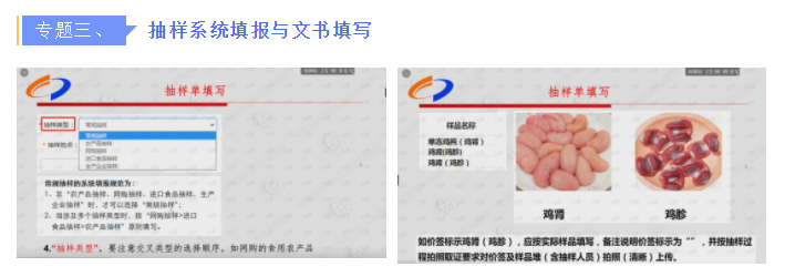 老師主要從信息審核過(guò)程中發(fā)現(xiàn)的問(wèn)題及原因分析、國(guó)家食品安全抽樣檢驗(yàn)信息系統(tǒng)的抽樣單填寫要求、信息系統(tǒng)中上傳照片的采集等三個(gè)大方面進(jìn)行詳細(xì)的介紹,結(jié)合抽樣過(guò)程中典型不合格案例,對(duì)抽樣單填寫要求進(jìn)行詳細(xì)的解讀。