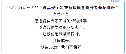 老師首先詳細(xì)解析食品安全抽樣檢驗(yàn)管理辦法重要變化,然后著重對(duì)食品安全通用標(biāo)準(zhǔn)(GB 2762、GB 2760、GB 2763、GB 29921、GB 31607)等國(guó)家標(biāo)準(zhǔn)修訂的變化亮點(diǎn)、國(guó)抽細(xì)則、生產(chǎn)許可、污染物判定中食品分類的差異做了全方位細(xì)致的分析和解讀,最后對(duì)這些通用標(biāo)準(zhǔn)在食品安全監(jiān)督抽檢中應(yīng)用的常見問(wèn)題和注意事項(xiàng)進(jìn)行一一闡述。讓學(xué)員對(duì)于食品安全抽樣檢驗(yàn)管理辦法的變化、食品安全通用國(guó)家標(biāo)準(zhǔn)在監(jiān)督抽檢中的應(yīng)用等內(nèi)容有了較為全面的了解。