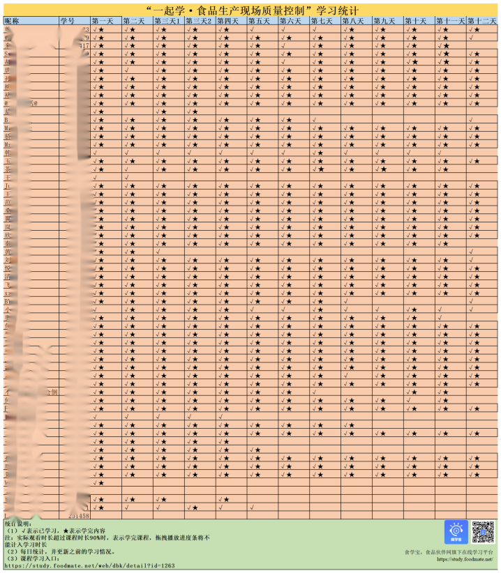 在學(xué)友的共同努力和堅(jiān)持下,食學(xué)寶第一期伴學(xué)活動(dòng)《一起學(xué)·食品生產(chǎn)現(xiàn)場(chǎng)質(zhì)量控制》圓滿結(jié)束。