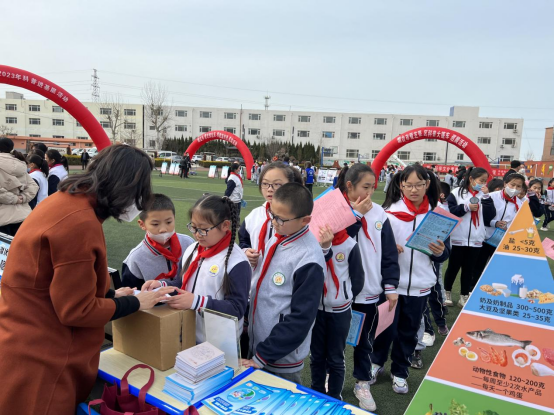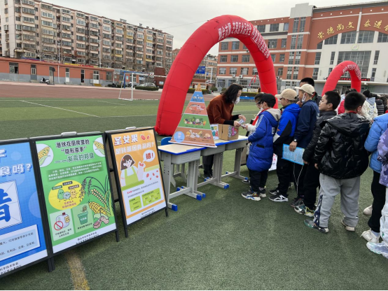 同時,利用宣傳展板向學生科普食物中毒的危害及預防措施、合理膳食的科學做法以及科學選購理性消費等要點,幫助同學們樹立科學合理的飲食觀念,掌握正確的食品安全和營養(yǎng)健康知識。