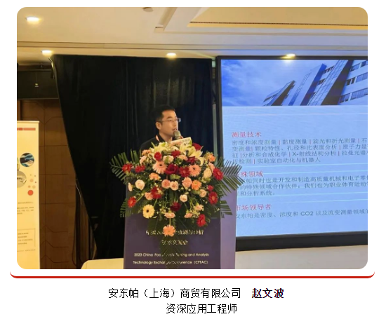 10:15-10:35,安東帕(上海)商貿(mào)有限公司 資深應(yīng)用工程師 趙文波老師做了題為“食品安全之樣品前處理和酒類分析應(yīng)用解決方案”專題報告。趙老師從多維度解讀了樣品前處理技術(shù)要點,分享了安東帕智能化樣品制備平臺解決方案,為學(xué)員們提供了全方位酒類分析應(yīng)用方案。趙老師的報告為學(xué)員們提供了更多更優(yōu)的前處理方案,能迅速提高檢測效率。
