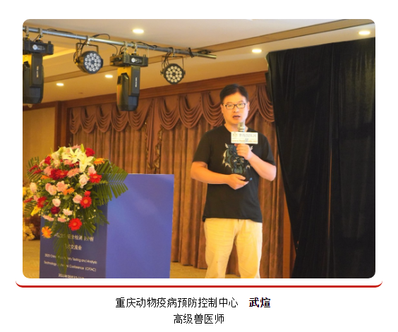 10:15-10:45,重慶動物疫病預(yù)防控制中心 高級獸醫(yī)師 武煊老師做了題為“農(nóng)獸藥殘留快速檢測技術(shù)研究進展”專題報告。武老師系統(tǒng)介紹了農(nóng)藥殘留、獸藥殘留的快速檢測方法,如膠體金法、ELISA法、酶抑制法等方法的檢測原理,注意事項、優(yōu)點,局限性等知識點。武老師的報告內(nèi)容豐富,將農(nóng)獸藥殘留快檢方法進行了全面的分享。
