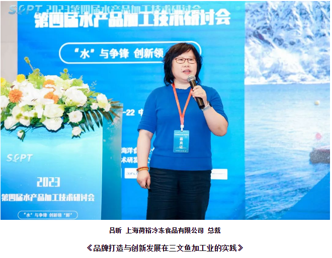 呂昕女士,上海荷裕冷凍食品有限公司總裁,呂總現(xiàn)場報告分析了三文魚加工業(yè)的發(fā)展概況,闡述了品牌打造和創(chuàng)新對業(yè)務(wù)成功的在重要性,并分享了深耕做好產(chǎn)品的一些企業(yè)經(jīng)營經(jīng)驗。包括:產(chǎn)品研發(fā)精準(zhǔn)把握市場需求,根據(jù)原料屬性,開發(fā)適應(yīng)中國人飲食喜好的產(chǎn)品,做好加工過程中的保鮮和質(zhì)量控制,把好安全關(guān)。后續(xù)講述了荷裕品牌打造與創(chuàng)新發(fā)展歷程和故事,提出TOC思維開發(fā)、精益求精的工藝和不斷的技術(shù)創(chuàng)新、傳統(tǒng)與現(xiàn)代技術(shù)的融合等,對參會企業(yè)代表具有借鑒性的意義和啟發(fā)。