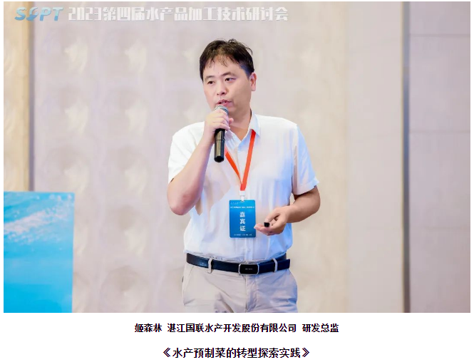姬森林,湛江國聯(lián)水產(chǎn)開發(fā)股份有限公司 研發(fā)總監(jiān),分析了水產(chǎn)加工企業(yè)在轉(zhuǎn)型預(yù)制菜中遇到的一些問題,在探索的過程中是如何把握機(jī)會與解決問題的,通過對烤魚、酸菜魚、調(diào)味小龍蝦的企業(yè)實踐案例進(jìn)行分享,包括研發(fā)設(shè)計、工藝轉(zhuǎn)化、自動化提升、市場營銷、品牌打造等方面內(nèi)容,并對水產(chǎn)預(yù)制菜產(chǎn)業(yè)的規(guī)劃發(fā)展方向與路徑進(jìn)行了闡述。