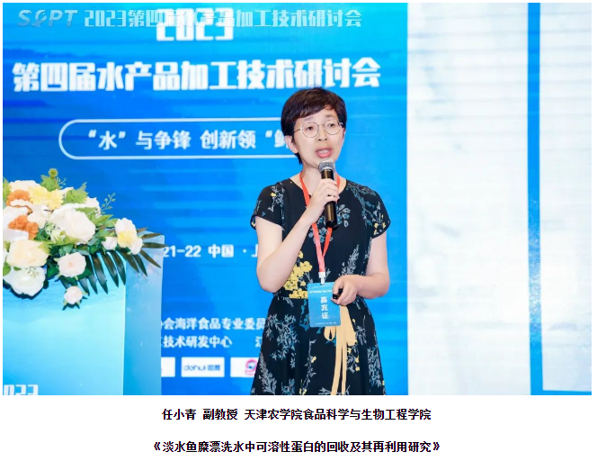 任小青,天津農(nóng)學(xué)院食品科學(xué)與生物工程學(xué)院副教授,國家大宗淡水魚加工技術(shù)研發(fā)分中心(天津)負(fù)責(zé)人。魚糜制品加工過程中,漂洗是其非常重要的工藝環(huán)節(jié),然而,在魚糜漂洗過程中有1/3左右的水溶性蛋白溶于漂洗水中被廢棄,這不僅極大地浪費(fèi)了資源,而且污染了環(huán)境。任老師報告簡要介紹了魚糜漂洗水研究背景,并匯報了團(tuán)隊成員研究不同回收技術(shù)對淡水魚糜漂洗水中可溶性蛋白性質(zhì)的影響、回收蛋白對肌原纖維蛋白凝膠特性的影響以及回收蛋白在魚糜制品中的回添應(yīng)用效果,為漂洗水的綜合利用提供借鑒參考。