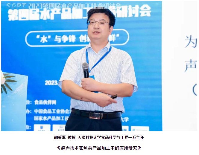 胡愛軍教授,天津科技大學(xué)博士生導(dǎo)師,食品科學(xué)與工程一系主任。報告簡要介紹了超聲技術(shù)的原理和水產(chǎn)品加工現(xiàn)狀,重點(diǎn)介紹了魚的超聲冷凍、解凍和清洗技術(shù);魚類產(chǎn)品的超聲腌制和殺菌以及魚類活性成分的超聲提取及其蛋白質(zhì)改性研究,并結(jié)合課題組的研究成果介紹基于超聲技術(shù)開發(fā)的水產(chǎn)食品和制品,使與會人員對超聲技術(shù)在魚類產(chǎn)品加工中的應(yīng)用有較全面的了解,以促進(jìn)超聲新技術(shù)的應(yīng)用和水產(chǎn)品加工業(yè)的發(fā)展。