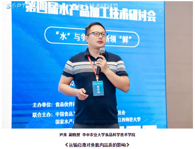 尹濤,華中農(nóng)業(yè)大學(xué)食品科學(xué)技術(shù)學(xué)院副教授。活魚運(yùn)輸是“淡水魚全產(chǎn)業(yè)鏈”中的重要環(huán)節(jié),可實現(xiàn)跨地域資源調(diào)配、供需平衡。在活魚運(yùn)輸過程中,因受到多種應(yīng)激源的影響,魚體產(chǎn)生應(yīng)激反應(yīng),從而影響魚體存活率、加工特性、食用品質(zhì)和消費(fèi)者接受程度等。尹老師報告首先簡要介紹了魚運(yùn)輸過程中的應(yīng)激源及應(yīng)激反應(yīng),然后重點(diǎn)介紹了華中農(nóng)業(yè)大學(xué)水產(chǎn)品加工團(tuán)隊近年來在運(yùn)輸應(yīng)激對淡水魚肌肉品質(zhì)影響方面開展的課題研究。報告為保持、提升運(yùn)輸后魚類肌肉品質(zhì)提供了思路。