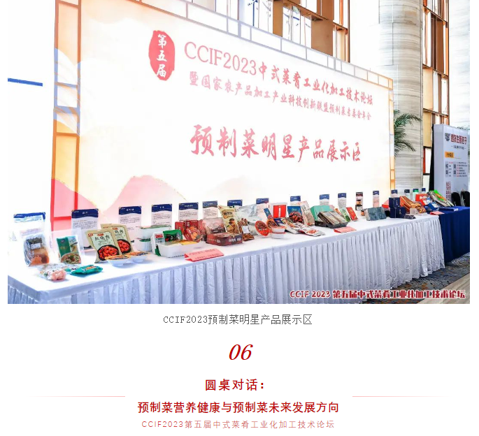 本次CCIF2023第五屆中式菜肴工業(yè)化加工技術(shù)論壇全體大會(huì)上,來(lái)自中國(guó)農(nóng)業(yè)科學(xué)院農(nóng)產(chǎn)品加工研究所,揚(yáng)州大學(xué)食品學(xué)院,北京工商大學(xué)食品學(xué)院,山東金德利餐飲集團(tuán)有限公司,信良記,鐵騎力士集團(tuán),湖南匯湘軒生物科技股份有限公司的七位嘉賓,以“預(yù)制菜營(yíng)養(yǎng)健康與預(yù)制菜未來(lái)發(fā)展方向”為題展開(kāi)圓桌對(duì)話,結(jié)合各自專業(yè)領(lǐng)域及產(chǎn)學(xué)研的不同角度分享了對(duì)上述問(wèn)題的見(jiàn)解,并對(duì)預(yù)制菜行業(yè)的未來(lái)發(fā)展進(jìn)行了深度探討。