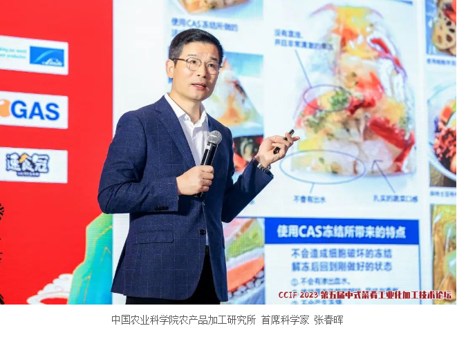 中國(guó)農(nóng)業(yè)科學(xué)院農(nóng)產(chǎn)品加工研究所首席科學(xué)家張春暉以《預(yù)制菜的過(guò)去、現(xiàn)在與未來(lái)》發(fā)表演講。
