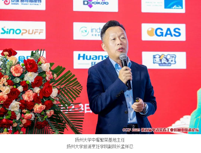 揚(yáng)州大學(xué)中餐繁榮基地主任,揚(yáng)州大學(xué)旅游烹飪學(xué)院副院長(zhǎng)孟祥忍發(fā)表了主題為《營(yíng)養(yǎng)高品質(zhì)預(yù)制菜開(kāi)發(fā)路徑的思考與探索》的演講。