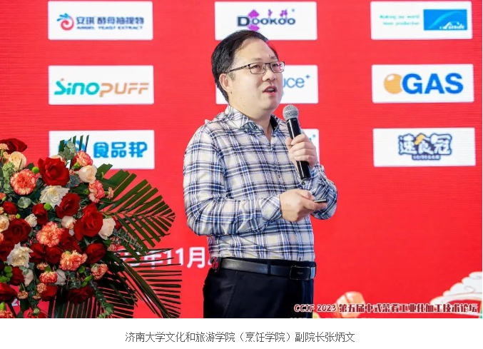 濟(jì)南大學(xué)文化和旅游學(xué)院(烹飪學(xué)院)副院長(zhǎng)張炳文在論壇中發(fā)表了主題為《講好食品(營(yíng)養(yǎng))科學(xué)故事,引領(lǐng)預(yù)制菜產(chǎn)品的健康消費(fèi)》的演講。