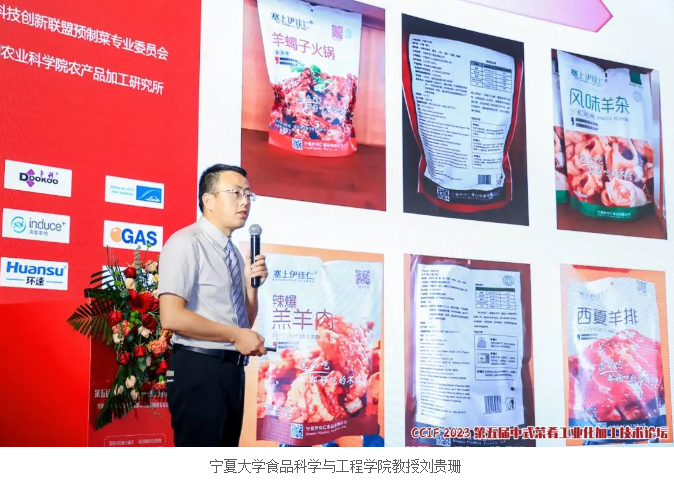 劉貴珊在本次演講中總結(jié)分享了寧夏預(yù)制菜的產(chǎn)業(yè)政策、加工現(xiàn)狀及區(qū)域分布特點(diǎn),分析手抓羊肉、小炒黃牛肉、枸杞玉米餅、沙湖大魚(yú)頭等典型“寧味預(yù)制菜肴”的工藝特點(diǎn)、產(chǎn)品形式、保鮮加工技術(shù)及裝備,深入探討寧味預(yù)制菜面臨的原料預(yù)處理、關(guān)鍵技術(shù)與智能裝備創(chuàng)制、貯藏與保鮮、質(zhì)量與安全檢測(cè)、安全與品質(zhì)控制、安全風(fēng)險(xiǎn)評(píng)估、風(fēng)味與感官評(píng)價(jià)、營(yíng)養(yǎng)與健康等關(guān)鍵產(chǎn)業(yè)問(wèn)題,預(yù)判寧夏預(yù)制菜未來(lái)發(fā)展的趨勢(shì),以期為地方預(yù)制菜肴持續(xù)快速高質(zhì)量健康發(fā)展提供指導(dǎo)。