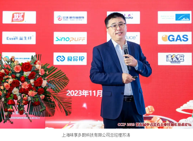 上海味享多廚科技有限公司總經(jīng)理蘇濤在論壇中發(fā)表了主題為《預(yù)制菜工業(yè)園、工廠的規(guī)劃建設(shè)與運(yùn)營(yíng)》的演講。