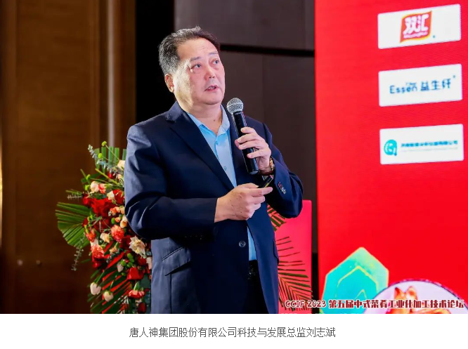 唐人神集團(tuán)股份有限公司科技與發(fā)展總監(jiān)劉志斌在論壇中發(fā)表了主題為《傳統(tǒng)肉類(lèi)工廠如何向預(yù)制菜轉(zhuǎn)型》的演講。