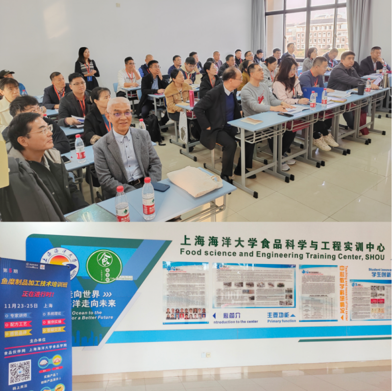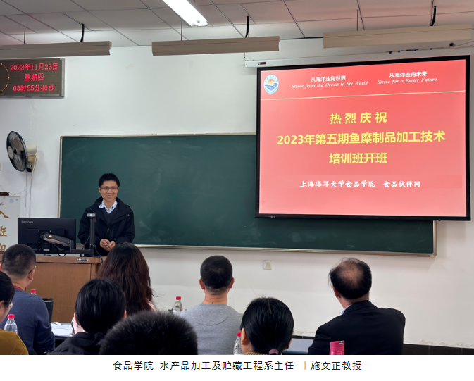 11月23日上午8:50,在上海海洋大學食品學院水產(chǎn)品加工及貯藏工程系主任 施文正教授的主持下,2023第五期魚糜制品加工技術培訓班正式開啟!培訓課程主要包含:理論課程1天+案例實操1天+感官評價及品鑒交流0.5天,共2.5天。