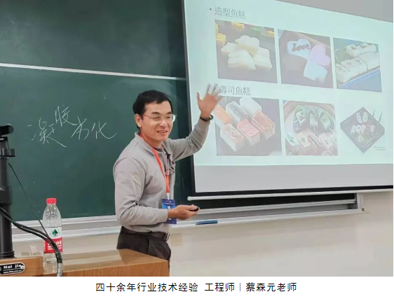 蔡森元老師,水產(chǎn)加工專業(yè),長期從事冷凍魚糜和魚糜制品加工工藝與研發(fā)工作,曾擔任相關公司項目負責人,廠長,技術總監(jiān)。對產(chǎn)品配方設計及創(chuàng)新產(chǎn)品的開發(fā)應用較為熟悉,擁有相關的的工作經(jīng)驗達40余年,多次長期于東南亞國家和國內擔任技術培訓工作。蔡老師授課兩個課時,第一課時主要從企業(yè)生產(chǎn)的角度,結合多年研發(fā)生產(chǎn)經(jīng)驗,為大家講解魚糜及其魚糜制品的原料選擇、加工技術及操作要點。第二課時主要以圖片和視頻的形式講解魚糜制品創(chuàng)新產(chǎn)品案例,為大家提供了實際應用經(jīng)驗,受益匪淺。