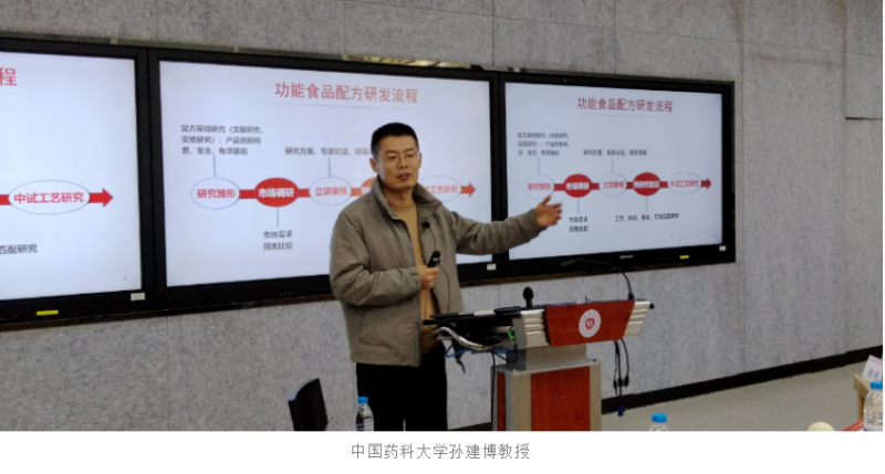 12月6日上午由中國(guó)藥科大學(xué)工學(xué)院食品營(yíng)養(yǎng)與安全系胡德俊老師及程抒劼老師對(duì)功能食品配方設(shè)計(jì)進(jìn)行了系統(tǒng)的講解。