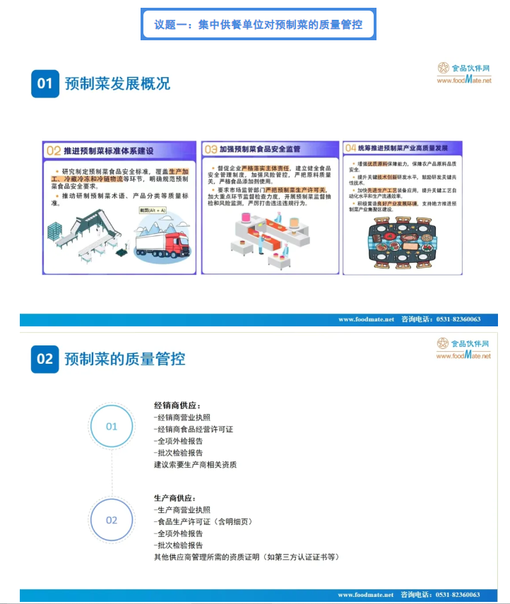 原老師首先為我們梳理了預(yù)制菜發(fā)展概況;然后從原料采購(gòu)、原料索證索票、進(jìn)貨查驗(yàn)、食品標(biāo)簽檢查、供應(yīng)商現(xiàn)場(chǎng)審核為我們講述了預(yù)制菜的質(zhì)量管控主要內(nèi)容。為集中供餐單位對(duì)預(yù)制菜的質(zhì)量管控提供了重要的理論,增強(qiáng)了集中供餐單位的相關(guān)認(rèn)知。