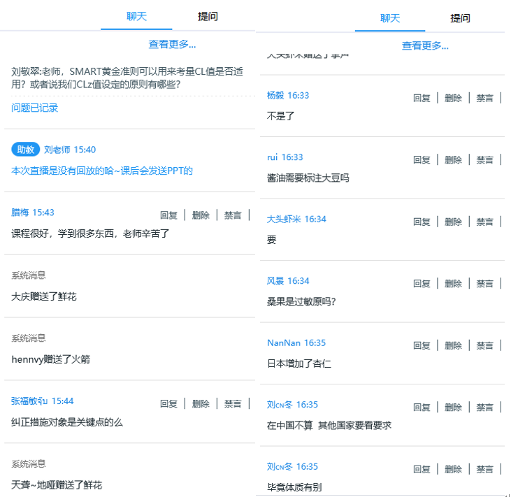 在直播間里,網(wǎng)友們積極交流,討論熱烈,提出了很多專業(yè)的問題,老師針對網(wǎng)友們提出的問題,進(jìn)行了現(xiàn)場答疑,獲得了網(wǎng)友的一致好評。會后,有幾百名網(wǎng)友加入了“質(zhì)量·認(rèn)證云課堂”培訓(xùn)交流2群,繼續(xù)食品行業(yè)專業(yè)問題的探討。
