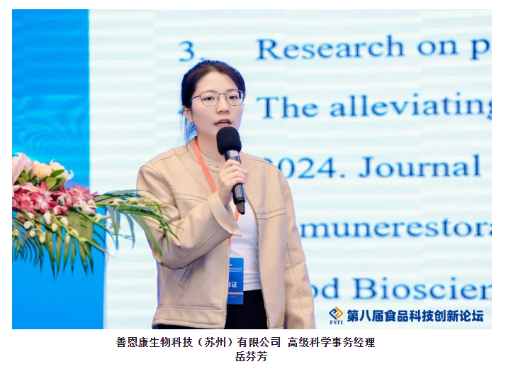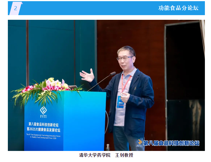 清華大學(xué)藥學(xué)院王釗教授分享了《基于提升機(jī)體內(nèi)在能力的抗衰功能性食品》的報(bào)告,從衰老的定義、人類(lèi)成熟期后隨增齡發(fā)生的主要功能的退行性變化入手,探討了基于提升內(nèi)在能力來(lái)改善表型功能的相關(guān)食品及其功能成分的作用與機(jī)制。仙樂(lè)健康科技股份有限公司研發(fā)科學(xué)家吳迪的報(bào)告主題為《仿生增效技術(shù)釋放營(yíng)養(yǎng)素潛能》,主要介紹了仙樂(lè)健康將廣泛應(yīng)用于醫(yī)藥領(lǐng)域的“仿生”概念嫁接到營(yíng)養(yǎng)健康飲食的研究中,發(fā)布了E立方仿生增效技術(shù)平臺(tái),最后介紹了DHA藻油萃優(yōu)酪的仿生增效案例。華熙生物科技股份有限公司營(yíng)養(yǎng)與健康原料事業(yè)部技術(shù)營(yíng)銷(xiāo)經(jīng)理張霞在報(bào)告《雙A組合:守護(hù)關(guān)節(jié)健康的創(chuàng)新力量》中介紹了華熙生物ACTIVENAG™N-乙酰氨基葡萄糖在改善關(guān)節(jié)健康的功效機(jī)理應(yīng)用以及UItraHA@J骨關(guān)節(jié)專(zhuān)用透明質(zhì)酸鈉改善關(guān)節(jié)健康的臨床驗(yàn)證,最后分享了“雙A組合”在改善關(guān)節(jié)健康方面的最新研究成果。森永乳業(yè)首席科學(xué)家、順天堂大學(xué)客座教授肖金忠博士報(bào)告的主題為《森永乳業(yè)的酶分解乳蛋白利用技術(shù):從減低抗原性到功能性多肽開(kāi)發(fā)》,介紹了森永乳業(yè)乳蛋白與酶分解技術(shù)、過(guò)敏源性的酶分解蛋白在嬰幼兒奶粉中的利用以及降尿酸多肽等新型功能性多肽的研究開(kāi)發(fā)進(jìn)展。濟(jì)南圣泉唐和唐生物科技有限公司應(yīng)用研發(fā)經(jīng)理甄文博分享了《L-阿拉伯糖對(duì)腸道健康影響試驗(yàn)報(bào)告及相關(guān)創(chuàng)新應(yīng)用解決方案分享》的報(bào)告,主要介紹了L-阿拉伯糖對(duì)腸道健康影響的動(dòng)物試驗(yàn)報(bào)告以及L-阿拉伯糖在食品中的創(chuàng)新應(yīng)用解決方案。環(huán)特生物市場(chǎng)營(yíng)銷(xiāo)總監(jiān)梁權(quán)龍分享了《特殊食品人體試食試驗(yàn),解鎖功能食品的科學(xué)密碼與市場(chǎng)潛力》的報(bào)告,介紹了人體試食在功能食品循證科學(xué)研究中的重要作用以及環(huán)特人體試食功效評(píng)價(jià)平臺(tái)的實(shí)踐。青島明月海藻生物科技集團(tuán)研發(fā)工程師李紫薇在《不止養(yǎng)胃更抗炎,深度解析巖藻多糖的健康密碼》報(bào)告中介紹了巖藻多糖在抗炎、清除幽門(mén)螺桿菌和護(hù)胃等方面的機(jī)理并詳細(xì)闡述了其在國(guó)內(nèi)外市場(chǎng)的利用現(xiàn)狀。寧波大學(xué)食品科學(xué)與工程學(xué)院執(zhí)行院長(zhǎng)邵興鋒教授分享了《桃果實(shí)及其關(guān)鍵成分改善2型糖尿病的作用及結(jié)構(gòu)鑒定研究》的報(bào)告,介紹了水蜜桃果肉對(duì)2型糖尿病小鼠的血糖、糖脂代謝及腸道菌群影響的研究,進(jìn)一步提取桃果實(shí)功能性成分多糖,探究了桃多糖對(duì)2型糖尿病小鼠的血糖、糖脂代謝及腸道菌群影響,最后分離了桃多糖,借助體外實(shí)驗(yàn),篩選出桃多糖發(fā)揮降血糖作用的關(guān)鍵組分。完美(中國(guó))有限公司創(chuàng)新研究專(zhuān)業(yè)經(jīng)理高業(yè)成的報(bào)告主題為《衰老研究新突破:完美抗衰前沿探索與實(shí)踐應(yīng)用》,介紹了全球抗衰研究進(jìn)展,然后剖析了抗衰特色原料的種類(lèi)、作用機(jī)理等。介紹多維安全與功效評(píng)價(jià)平臺(tái),及其對(duì)抗衰特色原料及產(chǎn)品組合物開(kāi)展的功效驗(yàn)證研究。
