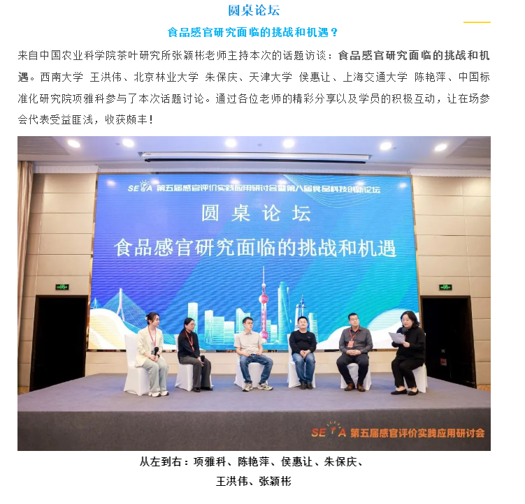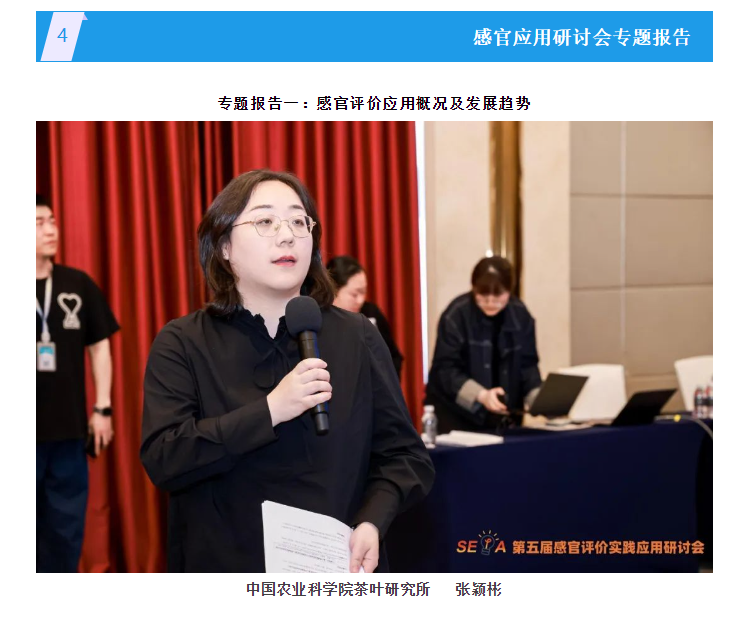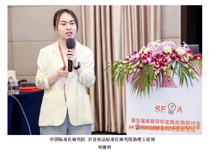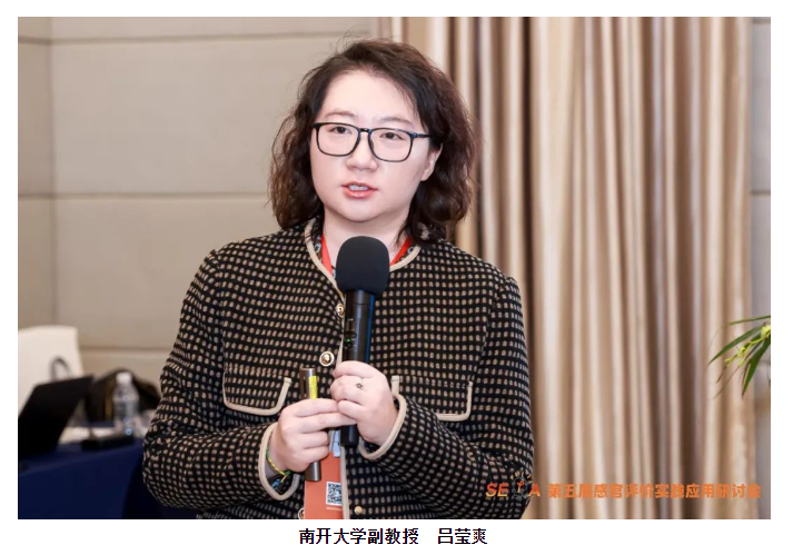 中國(guó)農(nóng)業(yè)科學(xué)院茶葉研究所張穎彬老師主持專(zhuān)題報(bào)告(一):感官評(píng)價(jià)應(yīng)用概況及發(fā)展趨勢(shì)。江南大學(xué)鐘芳教授介紹了近年來(lái)感知生理學(xué)、認(rèn)知心理學(xué)和智能感知技術(shù)飛速發(fā)展,傳統(tǒng)分析型食品感官分析方法面臨結(jié)果有效性和執(zhí)行效率的雙重挑戰(zhàn),多元感知交互策略在食品創(chuàng)新設(shè)計(jì)中被廣泛關(guān)注。上海應(yīng)用技術(shù)大學(xué)馮濤教授從范式變革、技術(shù)杠桿、關(guān)鍵命題、產(chǎn)業(yè)重構(gòu)、人才升級(jí)方面介紹了機(jī)器學(xué)習(xí)研究進(jìn)展及感官評(píng)價(jià)數(shù)字化趨勢(shì),并表示感官科學(xué)家不會(huì)消失,但固守經(jīng)驗(yàn)主義的感官科學(xué)家會(huì)——因?yàn)閿?shù)據(jù),正在重新定義“風(fēng)味”的邊界。中國(guó)標(biāo)準(zhǔn)化研究院農(nóng)業(yè)食品標(biāo)準(zhǔn)化研究所助理工程師項(xiàng)雅科老師講述了團(tuán)隊(duì)采用專(zhuān)業(yè)品評(píng)與消費(fèi)察、M值與多元統(tǒng)計(jì)相結(jié)合的技術(shù),逐步聚焦構(gòu)建地理標(biāo)志紅富士蘋(píng)果的感官風(fēng)味輪圖。提出基于消費(fèi)驅(qū)動(dòng)的快速感官評(píng)價(jià)方法,為全面表達(dá)不同品質(zhì)差異紅富士蘋(píng)果提供了技術(shù)支撐與方向引領(lǐng)。天津大學(xué)自動(dòng)化系副教授侯惠讓老師帶來(lái)《基于電子鼻的食品氣味智能感知技術(shù)》的精彩分享,侯老師分享了項(xiàng)目基礎(chǔ)、電子鼻的應(yīng)用領(lǐng)域及自研電子鼻的優(yōu)勢(shì)。南開(kāi)大學(xué)副教授呂瑩爽老師分享了基于感官組學(xué)中“化學(xué)計(jì)量-感知機(jī)制解析”的核心邏輯,通過(guò)電子舌客觀量化味覺(jué)特征,結(jié)合消費(fèi)者對(duì)風(fēng)味、質(zhì)地的偏好評(píng)價(jià)與理化指標(biāo)進(jìn)行關(guān)聯(lián)建模。這種“感官-理化-工藝”的多維映射,為精準(zhǔn)優(yōu)化加工參數(shù)提供了科學(xué)支撐,體現(xiàn)了感官組學(xué)在食品研發(fā)中“從現(xiàn)象到機(jī)制”的閉環(huán)應(yīng)用價(jià)值。上海交通大學(xué)副教授陳艷萍老師分享了《如何讓食品健康又美味?》。圍繞食品風(fēng)味物質(zhì)基礎(chǔ)、風(fēng)味物質(zhì)感知機(jī)制、風(fēng)味交互協(xié)同增效機(jī)制三個(gè)方面,討論前期關(guān)于食品健康美味的相關(guān)工作。